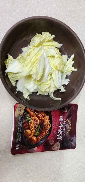 소스버젼이 아닌 완제품이 들어있는 버젼인데요 이마트에서 3890원 정도에서 구매했습니다 파우치 속엔 진짜 조그만한 1접시 분량으로 푸주.연근.메추리알 2알. 어묵볼 정도만 들어있어서 집에서 야채를 추가로 넣어서 같이 볶으며 양을 늘려먹는 것을 추천드려요 파우치엔 잎야채가 없는 상태입니다. 저는 맵찔이라 사진에 나온 배추 3장을 시작으로, 이후에 팽이버섯 1개. 추가로 배추 4장을 더 넣어서 매운맛을 중화시켜 먹었습니다. ... 더보기