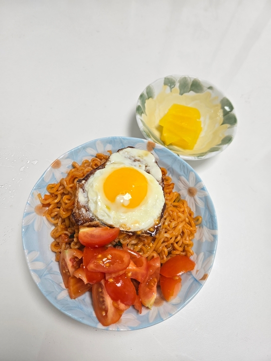 농심 '신라면 김치볶음면' "달큰하고 신라면보다 덜 매웠던" 산 지 한 달은 된 것 같은데 이제야 먹어본다. 미리 먹어본 가족들이 맵다고 해서 부재료는 프라이를 염두에 두었었다. 올리브유를 넉넉히 두르고 부쳐서 이 기름까지 넣고 비비면 풍미 UP 그리고 냉장고를 열었더니 방울토마토가 보여 추가. 매콤한 소스와 어우러져 맛 제대로였다. 오늘 한 일 중 정말 잘했던 일.. 고추장 비빔면이면 모를까 김치맛인데 또 달아서.. ... 더보기