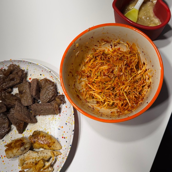 오늘 아기와 나의 저녁식사는 소고기와 양배추 둘다 두 입정도 먹고 뒤늦게 사진을 남겼다🥩🥬