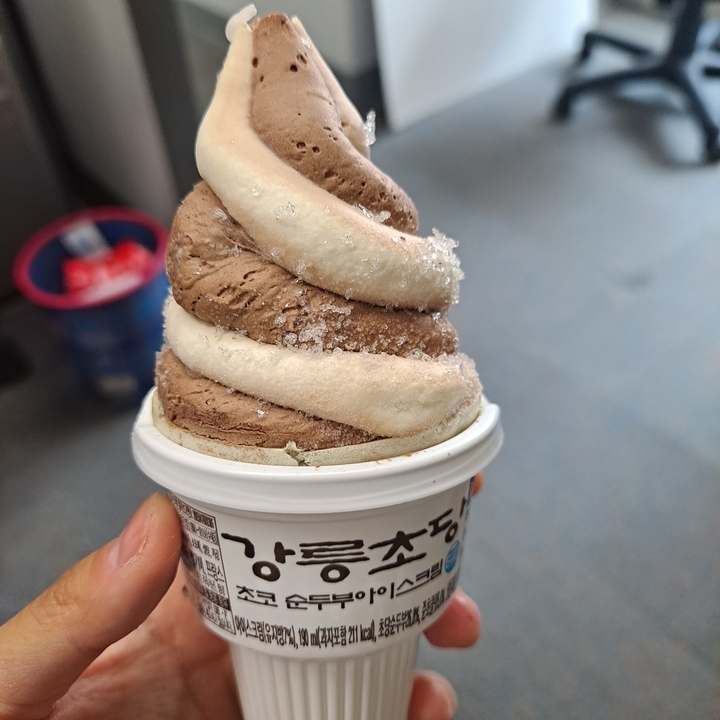 작년 요맘때 강릉가서 먹었던 순두부 아이스크림이 편의점에 나왔다길래 당장 사먹었다. 별로 안 달아서 좋았는데 그래도 끝엔 약간 물리더라. 초코 없는 버전을 먹을 걸 그랬나?
