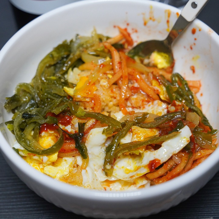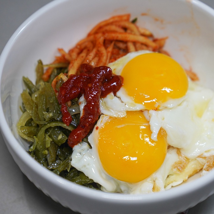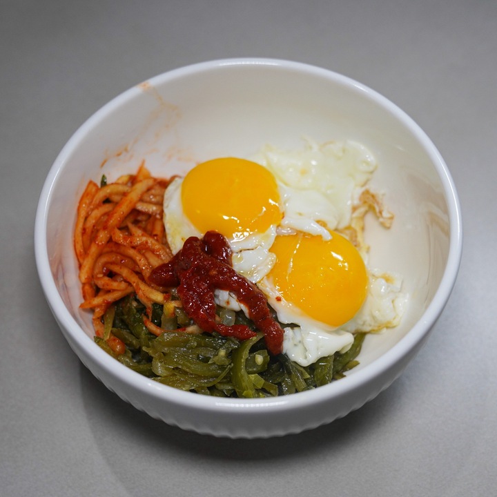 평소 즐겨 먹는 친숙한 반찬들로 정갈한 비빔밥을 맛볼 수 있는 나만의 작은 식당에 다녀왔어요 자리에 앉아 갓 지은 밥 위에 매콤하고 아삭한 무생채와 오독오독 씹히는 미역줄기를 듬뿍 올려 비빔밥을 만들었습니다 여기에 고소한 풍미를 더해줄 반숙 계란후라이 두 알 얹고 매콤달콤한 고추장 양념을 적당히 곁들여 쓱쓱 비벼주었어요 다양한 재료들이 한데 어우러져 입맛을 돋우는 감칠맛이 좋았고 채소들의 경쾌한 식감이 먹는 내내 기분 좋은... 더보기
