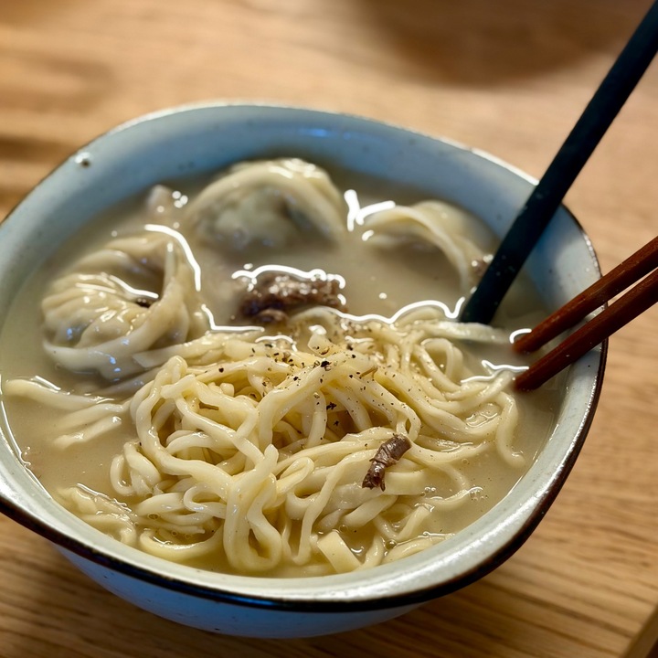처음으로 직접밀어 썰어본 손칼국수. 홍두깨가 없어 집에 항상 있는 소주병으로… 😅 모양이 나쁘지않네요! 장모님이 종종 엄청 진하게 꼬리곰탕을 끓여주시는데 진짜 콤콤한 향이 날 정도로 진합니다. 거기다 칼국수를 말아먹으니 진짜 어느 칼국수맛집보다 기막혔어요.
