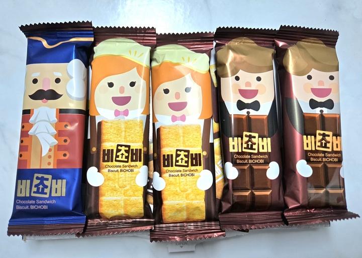 오리온 '비쵸비' "초콜릿을 통째로 샌드쿠키" 어디선가 가끔 상자째로 생긴다. 캐릭터들이 뭘 의미하는지는 모르겠으나 초콜릿이 뚠뚠하게 들어가 있고 비스켓 식감도 좋아 한 개 정도는 금세 뚝딱. 동영상 플랫폼에서들 만드는 법까지 공유될 만큼 깔끔하고 빈츠처럼 꽤 고급 패키징이다. 사먹는 과자나 빵에 속쓰림이 있는 편이라 아쉽게도 자주는 못 사먹지만,, 초코러버로써 추천하는 맛~😋