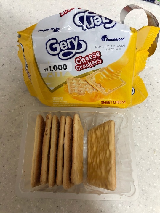 다낭 갔다온 친구가 선물로 줘서 먹어보았습니다! 설탕 발린 크래커 한쪽에 치즈가 묻어있네용ㅋㅋ 그래서 스윗치즈인가🤔 사실 치즈향은 그리 나진 않고 많이 달지도 않아요! 근데 옆에 있음 계속 집어먹을 것 같아요ㅋㅋㅋ 제 입맛엔 이거보다 지에스에서 파는 치즈 크래커가 더 맛있었습니다ㅎㅎ ( https://polle.com/i/1aqvdC )