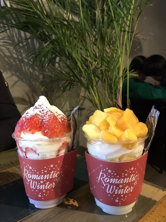 시즌되면 항상 먹어주는 메리시리즈~ - 그중 메리 딸기가 제일 인기 많은데 새롭게 망고도 먹어봤다 얼린망고라서,, 흠,, 그냥 그랬음 딸기는 생딸기~ 내가 가는 매장은 쇼케이스 하나가 전부 신선한 딸기로 가득차 있어서 좋았다 ㅋㅋ - 밑엔 요거트 아이스크림이랑 먹으면 완벽한 디저트~
