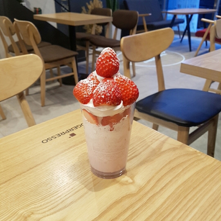 6500원. 요거프레소의 여타 음료에 비하면 비싸지만 스타벅스를 가느니 즉시 발길돌려서 여길 오겠다. 딸기 프라푸치노+생딸기 6개+요거트아이스크림. 꽤 가성비 좋지않나? 아 그치만 요거트팡인인 나는 개인적으로 다시오면 요거트 아이스크림으로 주문할것. 맛있다 이거.