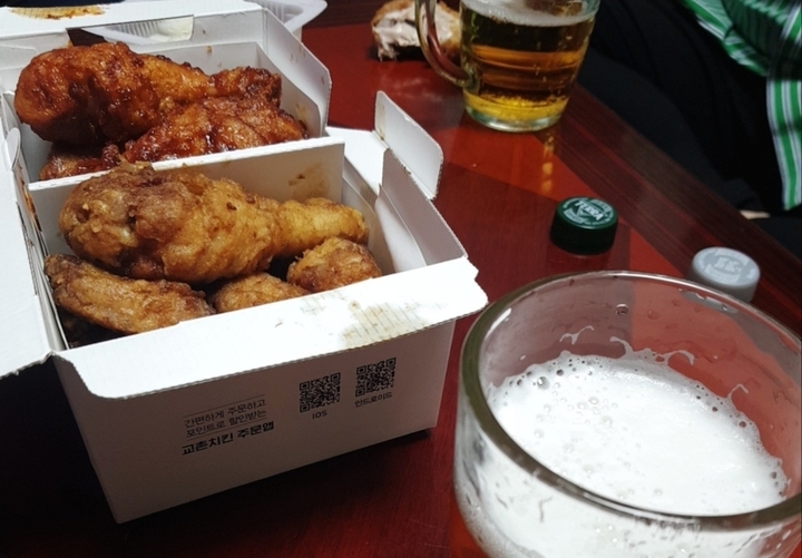 확 그렇게 맛있는 건 아닌데 한 번 먹으면 왜 사람들이 어떤 매력으로 교촌을 먹는지 알 것 같음. 그나저나 치킨값 20,000원 시대가 열렸구나.