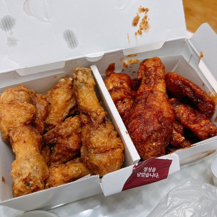 오랜만에 교촌 ꒰ ⸝⸝ɞ̴̶̷ ·̮ ɞ̴̶̷⸝⸝꒱ 주말이라 그랬나 50분이나 걸렸다 #eun_item