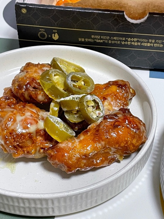 ✔️고추마요 치킨 내사랑 푸라닭 고추마요🤍 맛있는 거 먹고 싶은데 튀긴 치킨은 부담스러울 때 푸라닭을 시킵니다. 마요 소스라 조금 느끼할 수 있는데 할라피뇨 같이 먹으면 느끼함이 싸악- #쑥절미템