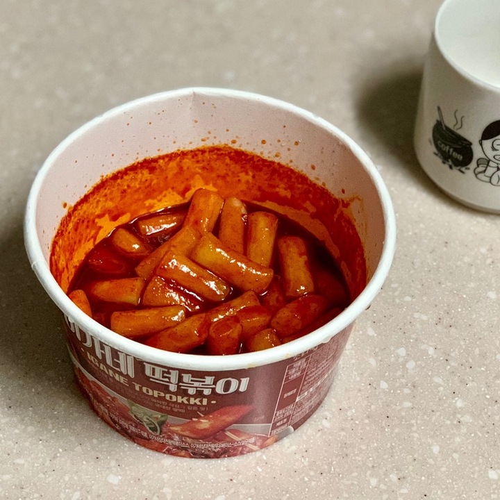 단맛이 옛날 떡볶이 생각을 나게 하는데, 아무래도 떡을 따로 좀 익히면 괜찮을 듯. 물을 따로 넣지 않고 전자렌지에 돌리는 방식인데 뜨거운 물에 떡을 좀 불린 다음에 만들어 보면 어떨까. ₩3,500 #이가네떡볶이 #세븐일레븐