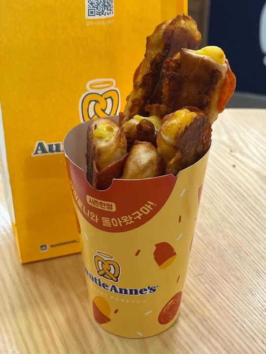 고구마크림치즈 스틱에 페퍼로니..?? 괴식일 줄 알았는게 토마토소스 묻혀서 먹으면 페퍼로니 피자맛이에요..!! 그런데 거기 고구마 무스가 있는 .... 암튼 안 물리고 맛있어요ㅋㅋㅋ 시즌 가기 전에 함 드셔보시길!! 👍