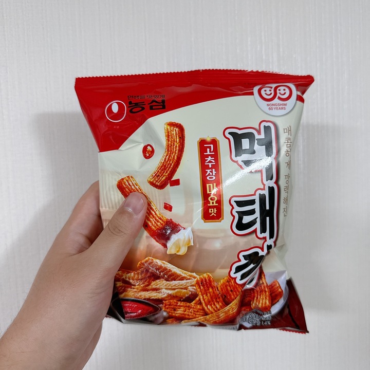 먹태깡 고추장마요 제 최애 과자가 새우깡인데 먹태깡 처음 먹어보고 이건 새우깡에 대한 배신이야!! 라고 느껴서 한동안 안 먹다 먹태깡 새로운 맛이 나와서 속는 셈 치고 먹어봤는데요. 결론적으론 기본 먹태깡 보다 맛이 낫습니다. 먹태깡에서 가장 별로였던 달달한 맛이 줄어들고 고추장 맛이 가미된지라 훨씬 제대로 된 맥주 안주처럼 느껴지네요.