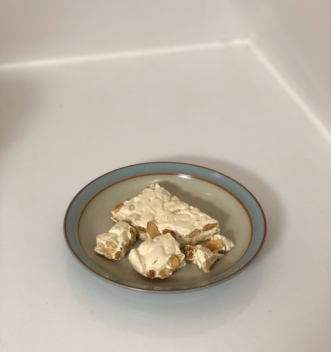 스페니시 꿀엿; 뚜론을 먹어보았습니다. 이건 세비야의 올리브오일가게 라올레오떼까 출신. 꿀맛이 진하게 나고요. 엿이라기보다 꿀 넣은 머랭이라 치아에 많이 달라붙지 않아요. 마켓컬리에도 뚜론이 있어요. 아이스크림에 꽂아 먹으라는 설명이(!)
