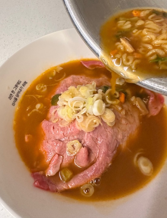 #러셔스쿠킹 #러셔스라면 #샤브라면 "초고급 신라면" 집에서 해먹는 샤브샤브를 냉동 소고기로 하시지 마시고 냉장 등심으로 해보세요. 고급 샤브집에서 먹는 샤브샤브 보다 훨씬 고급스럽고, 부드러운 맛을 볼 수 있습니다. 확실히 샤브샤브는 고기의 질이 가장 중요한 것 같아요. 그리고 고기가 남는다면 이런 라면 어떠세요? 바로 샤브라면. 이 라면은 일본 후쿠오카의 인기 라멘집인 #키와미 의 라멘을 보고 착안했는데 라면 위에 생... 더보기