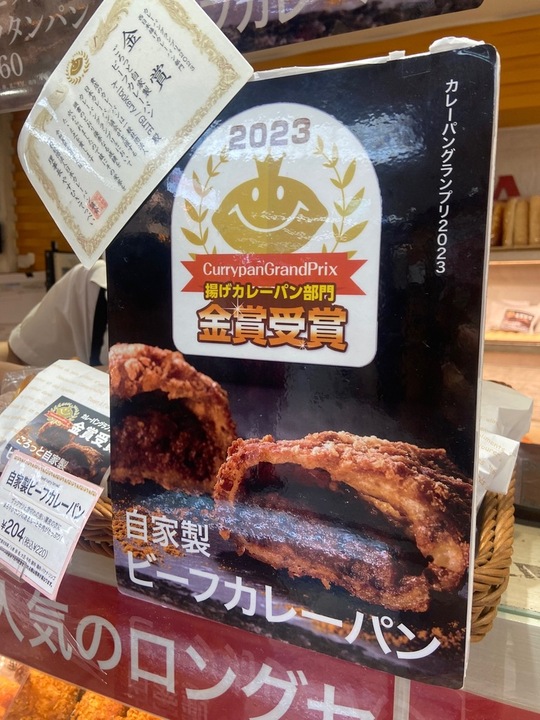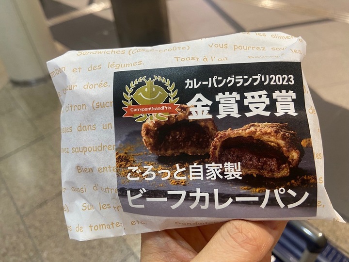 역에 붙은 빵집에서 보이던 카레빵이고요. 카레빵 그랑프리 2023 금상 수상 제품이라고 하네요(뭐든지 그랑프리가 있는 일본…) 데피지 않고 먹었는데도 꽤 깊은 맛이 맛있었습니다. 일부러 찾아 먹을 정도는 아닐 거 같지만 지나가다 보이면 하나 드셔보셔도 좋을거 같아요.