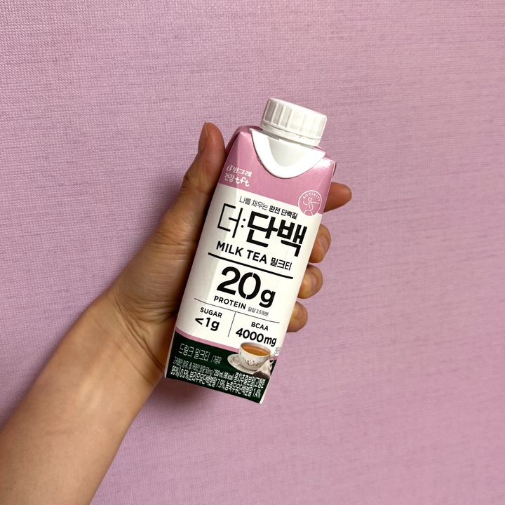 마침 단백질음료가 다 떨어져서 고맥님 리뷰보고 밀크티맛 주문해봤어요! 저는 밀크티가 우유베이스라 찾아먹진 않는 편인데 이건 (당연하게도) 제가 싫어하는 텁텁함이 덜한 밀크티맛이에요!! 초코맛에 질릴 때 마다 종종 생각날 것 같아요 🥤 요즘 단백질음료도 참 잘나오네요,,