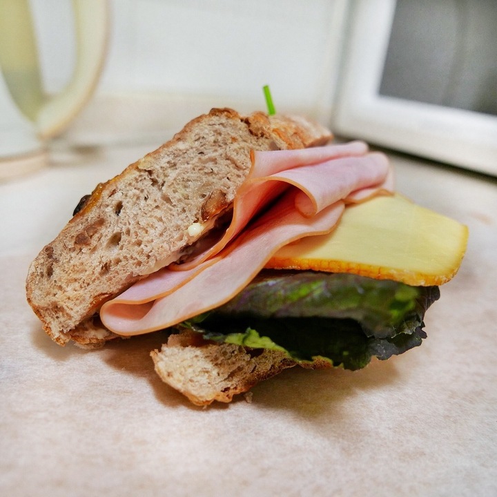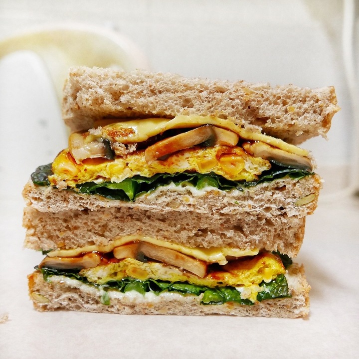 마롱햄샌드. 호두바게트 반 갈라 마롱스프레드랑 마요네즈 바르고 겨자잎이랑 치즈, 샌드위치햄 끼워서 완성. 의외로 밤의 단맛이랑 겨자잎, 마요네즈 조합이 괜찮아요. 의욕이 넘쳐서 햄이 튀어나와 메롱돼 모양이 쫌ㅋㅋㅋㅋㅋ 한여름에 웬 밤스프레드냐 물으면 가을을 미리 타려고...😎는 아니고 냉장고에 남은 걸 처리하고자 하는 청소부적 욕심이 불쑥 튀어나와 때아닌 가을풍 샌드위치를 만들고야 말았다고 매우 긴 문장으로 써보았습니다. ... 더보기