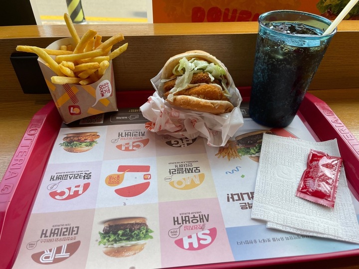새우 통으로 씹히는 알찬 패티 좋아요. 근데 케요네즈 쏘스 대신 타르타르면 더 좋았을거같고 소스 양이 더 많았음 좋겠어요. 아 제로콜라 자유로이 추가 가능한것도 좋은 점이랍니다. 롯데 많이 좋아진거같아요