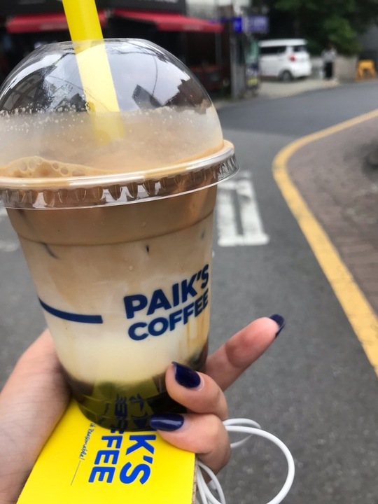 빽다방의 흑설탕버블밀크티. (흑설탕시럽에 우유가 아닌 밀크티입니다!) 버블이 들어가서 단가때문인지 평소의 긴 컵이 아니라 작은 사이즈 컵에 주더군요 맛은... 흑설탕버블티 중 가장 별로입니다 가격에 맞게...^^