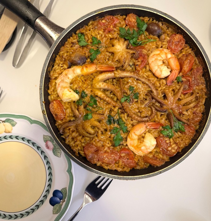#러셔스쿠킹 #빠에야 #Carmencita #Parlla_Kit "처음 만들어본 빠에야" 언젠가 스페인 여행 때 바르셀로나 공항에서 사온 빠에야키트. 이제서야 한 번 만들어 먹어본다. 마침 집에 샤브샤브 먹고 남은 해물이 잔뜩 있고, 늘 집에 이탈리안 허브가 있으니 못만들 이유는 없다. 빠에야 키트에는 EVOO, 쌀, 가루 시즈닝이 전부이지만 설명서가 아주 쉽게 가이드를 해준다. 방울토마토, 낙지, 쭈꾸미, 새우를 추가... 더보기