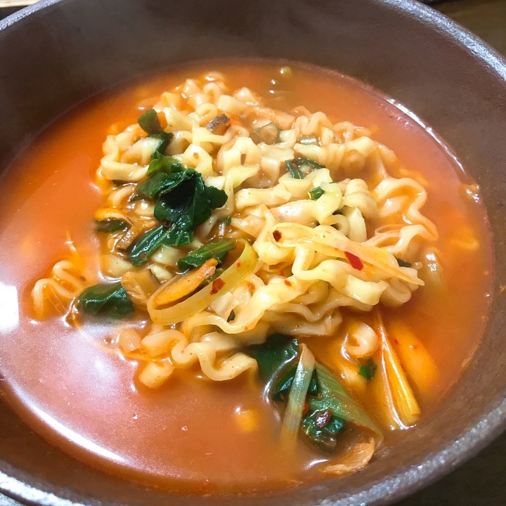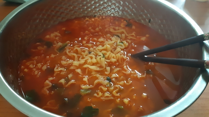 풀무원의 라면들은 대개 건더기가 실하고 어쩐지 모자란듯한 국물 맛이 특징이었는데 육칼은 역시나 건더기 실하고! 국물은... 육개장도 칼국수도 그닥 생각나지는 않지만 그냥 맛있다. 그냥 맛있는 라면. 면의 식감도 좋고 국물에서 나는 소고기 맛도 좋다. 포장에 써 있는대로 대파 조금 더 넣어서 먹으니 아주 존맛.... 고춧가루 좀 더 추가해서 먹어도 좋다.