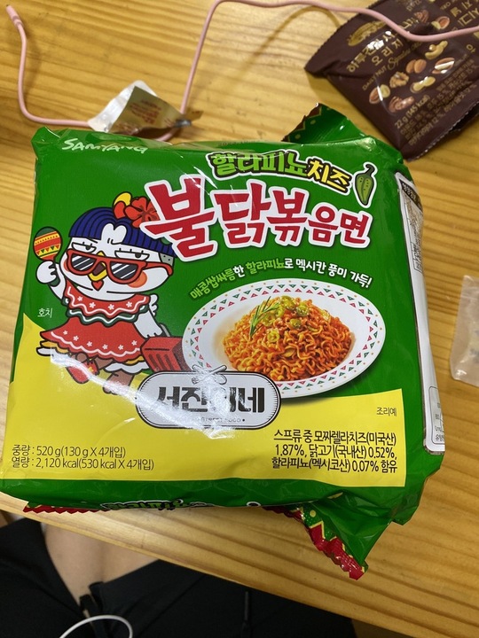원조 불닭의 매운맛과는 조금 결이 다른 매운맛이에요. 타바스코, 칠리소스계열의 매운맛이랄까요. 개인적으론 이 버전이 오리지널보다 더 매웠습니다. 치즈 분말 가루 들어있지만 그래도 맵고요 ㅠㅠ 김가루 대신 튀긴 할라피뇨를 올려주는데 이것이 매운 맛을 더 키우는 것 같아요. 도전해볼만 하지만 오리지널 중독자의 도전은 여기서 막을 내립니다...