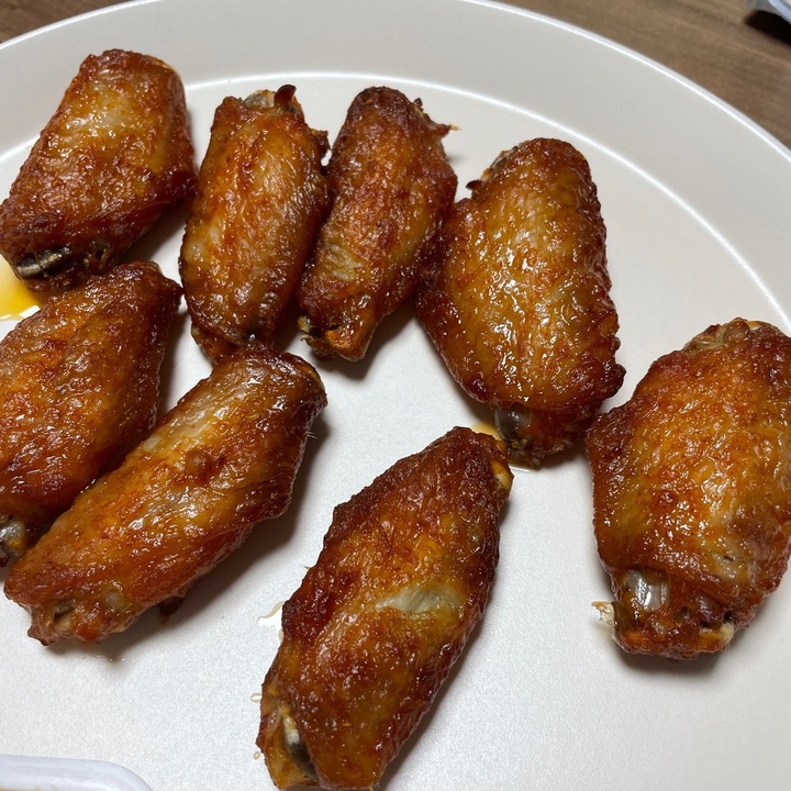 사세 버팔로 윙 1키로. 집 근처 도소매 같이 하는 마트에서 구매. #에어프라이어 180도 10분 + 200도 5-7분 유명한 제품이조. 버팔로 윙을 사이드로 하는 많은 가게에서 사용하는 제품.. 에어후라이에 종이나 호일깔고하면 깔끔하게 먹을 수 있어서 좋습니다. 버팔로 스틱도 따로 팜ㅁ