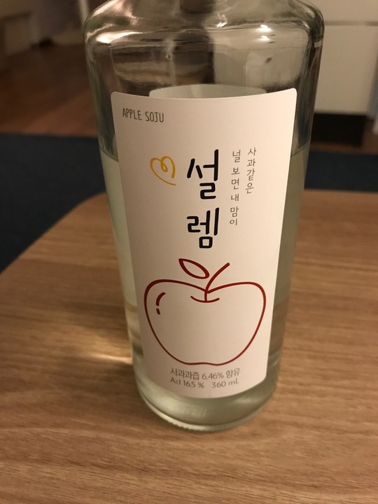 설렘 사과소주 - 편의점에서 발견하고 데려왔는데 기대를 너무 했는지..연말이라 술 자주 먹다보니 입맛이 달라진건지..🥲 그냥 사과로 만든 소주입니다! 사과향이 은은해요. 16.5도 저는 얼음에 타서 마셨어요🧊