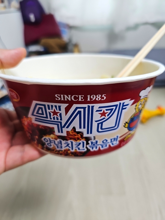 GS25 편의점에 갔는데 처음 보는 볶음면이 있어서 바로 사와서 시식!! 진짜 양념치킨 맛인데.. 묘하더라는..