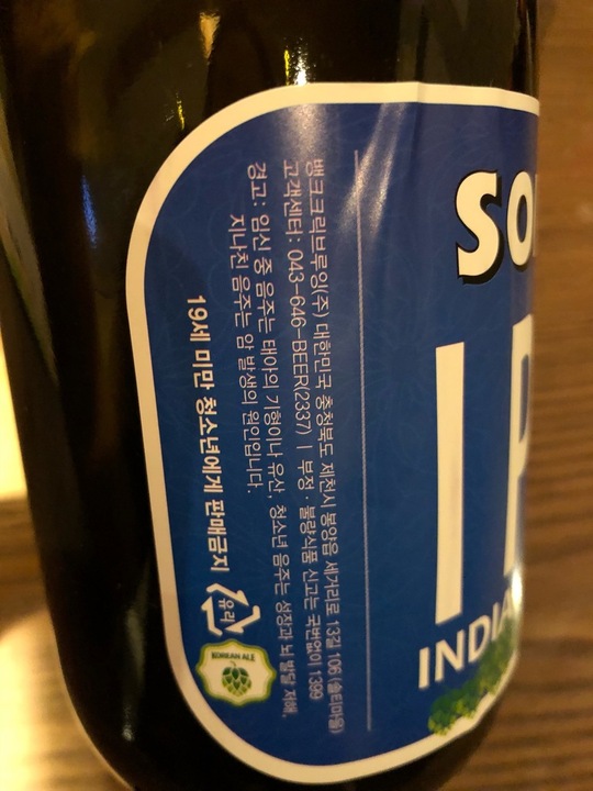 SOLTI IPA. 6.5%. IBU70. 제천 뱅크 크릭 브루잉. 벨기에 스타일의 맥주. 숙성을 오래 한다더니 그래서인지 쨍한 맛보다는 부드럽고 잘 넘어가는 맥주였다. #맥주 #솔티맥주 #제천 #음식빌런