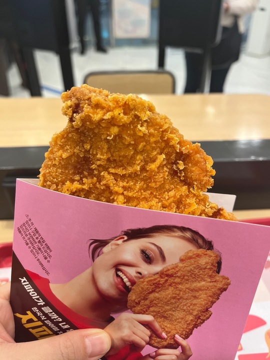 닭가슴살이래서 사실 먹기 꺼려졌어요. 퍽퍽살 싫어 웩 하지만 막상 먹어보니.. 쵹쵹한 닭가슴살이어서 너무 좋았습니다.. 닭가슴살이 이렇게 맛있을 수 있나..? 기름기가 쫙 들어가서 부드러워진걸까요..? 고소한 맛으로 먹었는데, 먹다보니 좀 기름지고 느끼해서 물렸습니다. 다음엔 하바네로 맛으로 먹으려구요! 다들 지파이와 얼굴 크기를 비교하시던데.. 지파이가 얼굴보다 작을까봐 차마 시도해보지 못했습니다.. 무서워..