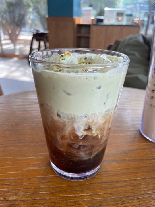 요즘 백수라 딜리버리를 자주 사용하는데(?) 그래서 예쁜 층은 볼 수 없었습니다...🥲 맛은... 크림만 먹어 보질 못해서 그냥 크림 콜드브루 같았어요ㅋㅋㅋ 거기에 피스타치오 토핑이 잔뜩 있는...! 생각보다 토핑 양을 많이 주더라고요? 원래 피스타치오 좋아해서 그건 좋았는데 딱히 음료 자체에선 피스타치오인지 뭔지 모르겠다는 점이 조금 아쉬웠네요.