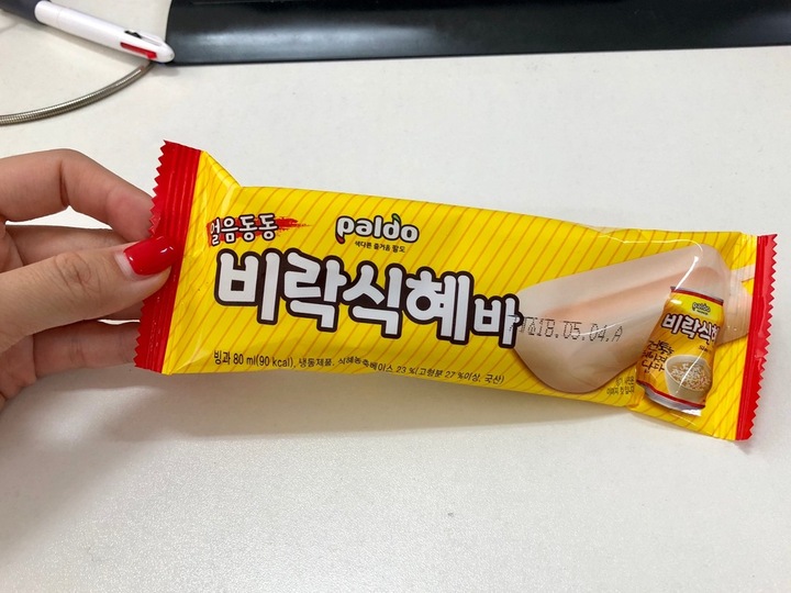 물론 식혜맛입니다 :) 비락식혜를 아이스크림으로 만들었어요. 밥알갱이말고 얼음알갱이가 씹힙니다. (비락뚱캔을 마셔본 지 너무 오래되었지만) 식혜보다 덜 달아서 그런지 밍밍하고 텁텁해요.. #CU 에서 발견