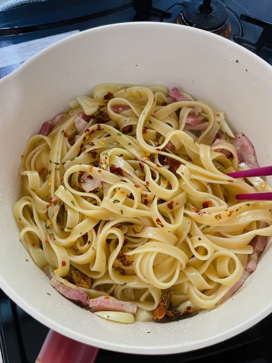오일 파스타! 그런데 마늘과 두툼한 베이컨을 가득 넣은.. 💕 폰타나 베네치아 갈릭 봉골레 소스 궁금했는데 감칠맛 쥑이네요~! 그리고 파스타면은 늘 사랑하는 룸모의 페투치네. 베네치아 시장에서 사왔던 향신료까지 뿌리니 이탈리아에서 사먹던 그어떤 맛있는 파스타보다 더 맛있는 파스타 완성 😊 #파스타 #베네치아 #오일파스타 #폰타나 #룸모