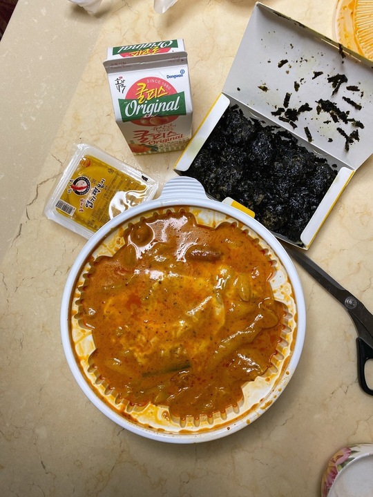배떡 한번 엽떡 한번... 이렇게 두 곳에서 로제를 시켜 먹고 깨달은 것은 로제 떡볶이는 딱히 제 취향이 아니라는 것이었습니다. 객관적으로 부드럽고 맵지도 않아서 먹기 편한데... 그래서 떡볶이 먹는 그 맛이 없어요 담부터 오리지날 시켜야지 명심!