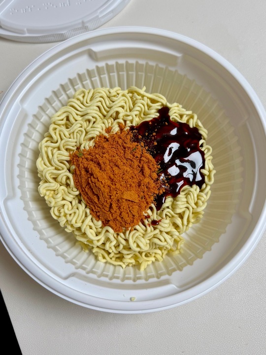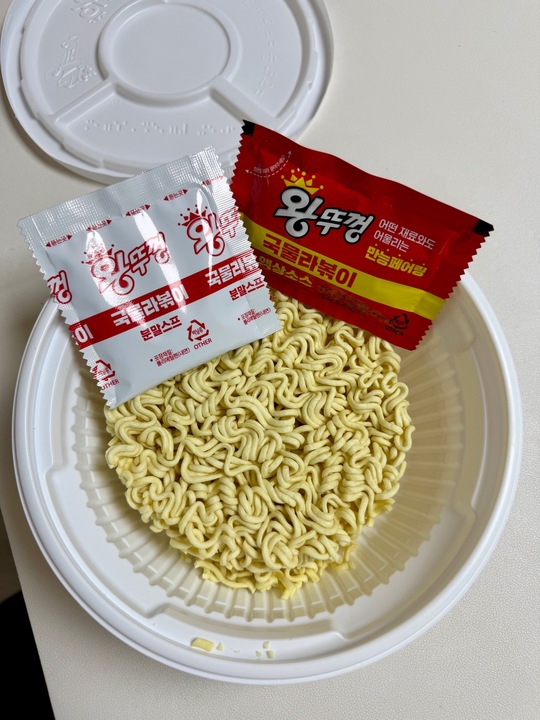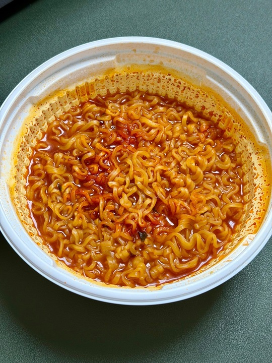 처음에 물 부었을 때만 해도 이거 너무 한강 아닌가 싶었는데 전자렌지 5분 돌리는 레시피가 킥이네요. 국물이 한 번 확 끓고 쫄아드니 진짜 떡볶이 국물 같은 질감이 있었고 맛도 생각보다 좋았습니다. 다만 왕뚜껑 느낌은 없어서 그냥 새로운 컵라면 같았네요. 김밥 등 다른 분식 메뉴를 곁들이면 더 좋겠어요.