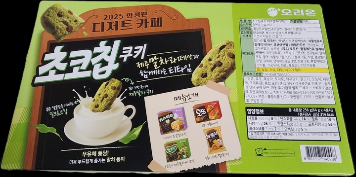 초코칩쿠키 제주말차라떼맛, 맛있게 먹었다. 말차맛이 진하지않은듯도 하지만 존재감은 느껴지고 초코칩이랑도 잘 어울린다.
