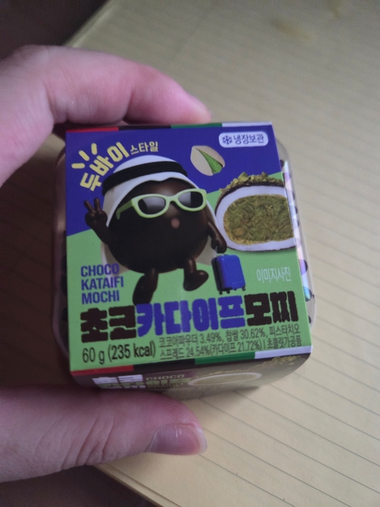 편의점 카다이프모찌볼 투어1 - 이마트 24에서 판매하고, 찹쌀 모찌에 가깝다. - 가격은 한 알 3,100원 - 피스타치오 향이 은은히 나고, 카다이프가 적당히 잘 씹혀서 내 취향이다. 쫀득 카다이프지만 난 "쫀득"보다 "카다이프"다 더 좋아서 ...쫀득 찹쌀이 안에 있어서 -1점이다.