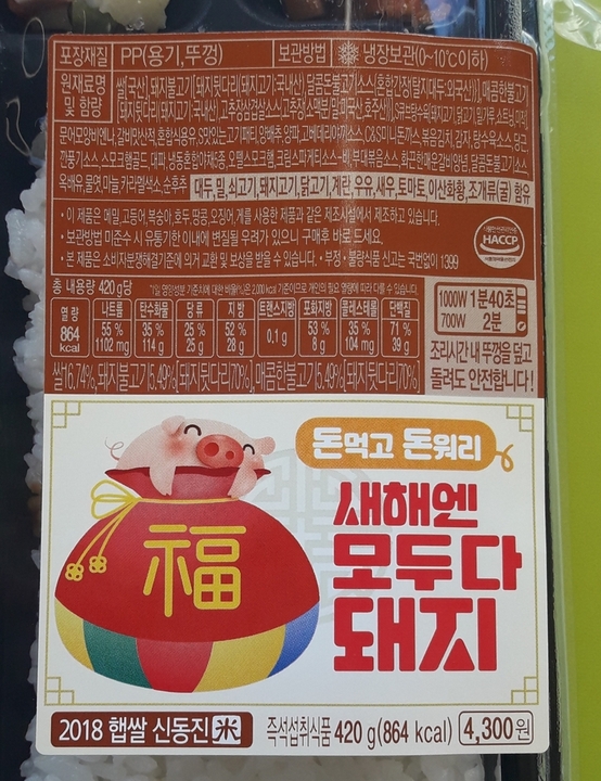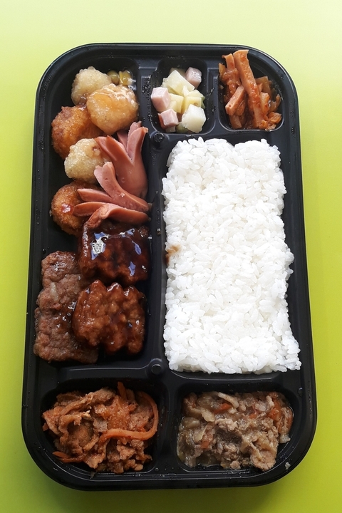 여긴 가끔 미친 것 같은 조합의 도시락을 만드는 것 같아요. 모든 반찬에 고기가 있어요. 심지어 김치도 부대볶음의... 햄과 김치를 볶은 그것입니다. 물론 모든 반찬들은 편의점의 퀄리티임을 감안해야하지만요. 먹으면서 '나는 이런 도시락도 당당하게 사먹는 어른이다'를 속으로 백만번쯤 외치게 되는 도시락입니다.