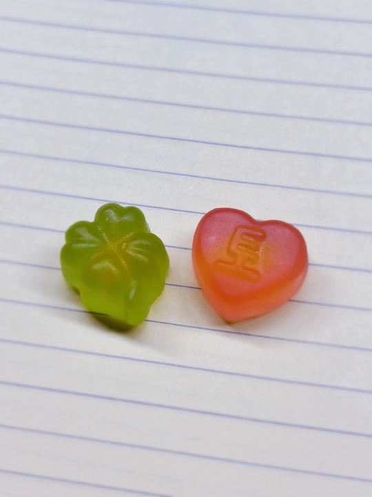 네잎클로버 모양과 토닥 글자가 각자 박힌 하트모양이 귀여움 무설탕이지만 말티톨이 들어간… 테아닌이 들어있어 릴렉스에 도움준다는 내용의 젤리 딱히 진정이나 릴렉스는 못느꼈고 말티톨의 장운동효과는 느낌