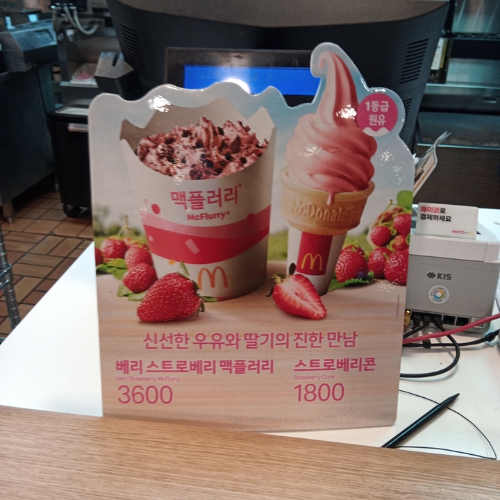벚꽃🌸처럼 봄이면 돌아오는 맥도날드 스트로베리 콘. 아시다시피... 아는 맛이고요 😌 2022년 글을 보니 1,200원이 되었다고 슬퍼하는 뽈레러들이 많았네요. 2025년 기준 1,700원입니다 🥲 이 아이템으로 물가 상승 지표를 만들어도 될 듯 흑