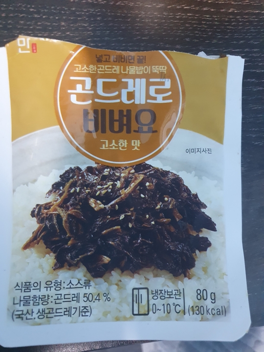 집 냉장고에 있던 곤드레로 비벼요 고소한 맛을 고구마에 비벼 먹었다. 고소한 맛이라는데 안 비비고 먹으면 짜다. 비벼서 먹자. 표기로는 비건이다.