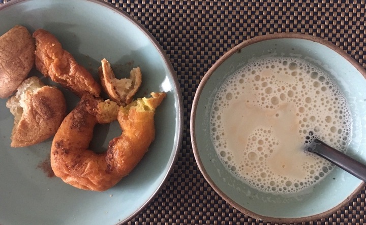 꾸꾸님이 주셨어요. 담백한 맛이예요. 이연님이 주신 것보다는 덜 단 느낌? 이 또우장을 어떻게 해야 완벽하게 먹을 수 있을까... 사놓고 이틀 방치해서 딱딱해진 동네 꽈배기 가게의 꽈배기와 찹쌀 도나츠가 발뮤다로도, 에어 프라이로도 회생이 안 되더군요.. 그래! 이 때다! 시나몬 찹찹 뿌려 또우장에 푹 담궈 맛있게 먹었습니다. 🤗 꾸꾸님 감사합니다... #꾸꾸님선물