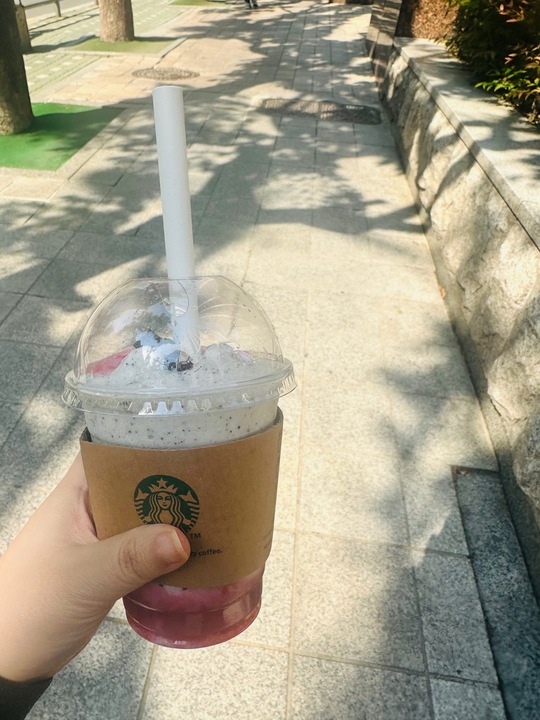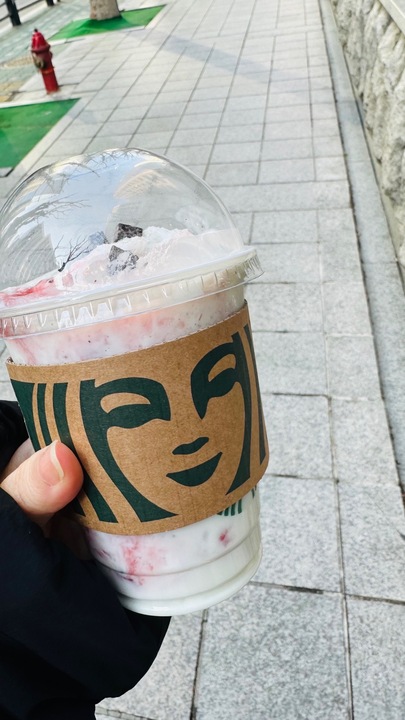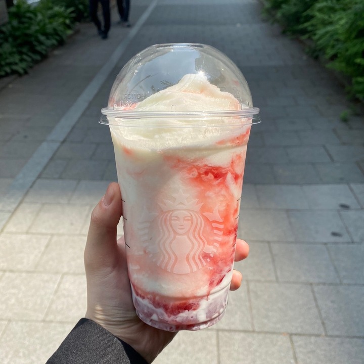 달고 딸기 먹고 싶을 때 시럽 절반만 넣고 가끔 자바칩 추가해주면 스벅에서 제일 최애 음료인 것 같다.