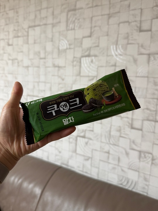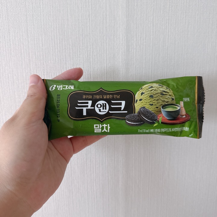 뭔가 텁텁한 쿠앤크 아이스크림의 매력에 말차맛 추가한 맛 말차맛이 별로 안나서 아쉬움 🫠