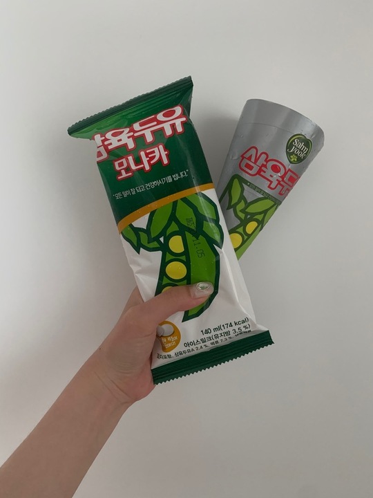 전 콘보다 모나카! 원래 모나카 아이스크림을 좋아하기도 하구요. 역시나 두유맛은 희미합니다..