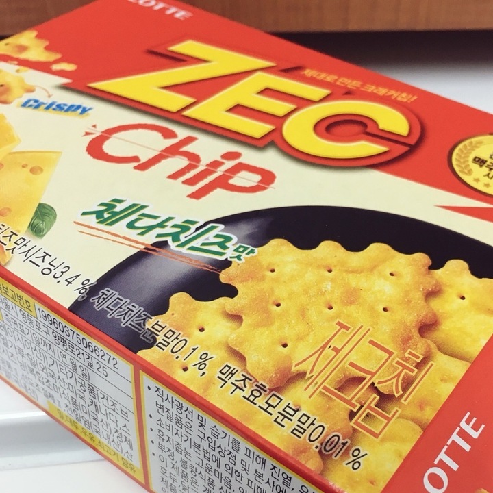 제크칩 체다치즈맛 - 기존 제크와는 완전 별개의 맛 이구요 한 입에 쏙 들어가는 크기에 식감도 바삭바삭 짭잘 달콤 체다치즈향 까지 그냥 먹어도 맛있지만 간단한 술 안주로 최적입니다
