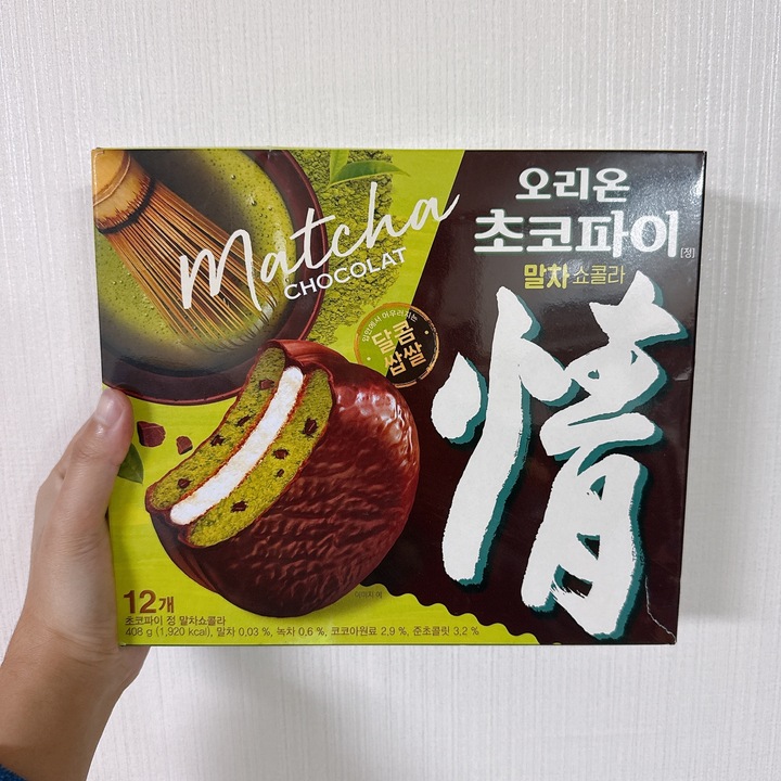 오리온 '초코파이 말차쇼콜라' "미세초코칩 콕콕 말차향 초코파이" 쇼콜라라고 다른 억양을 주었으나, 사실은 단어 그대로 고냥 말차초코. 오리지널 초코파이, 거기에 말차향이 살짝 첨가되고 마이크로초코칩인지 오독한 느낌이 없다. 마시멜로우 사이에 초코시럽이라도 있었으면 색달랐을듯! 쌉쌀, 말차향은 거의 없다. 오리지널과 비슷한 초코파이였다.