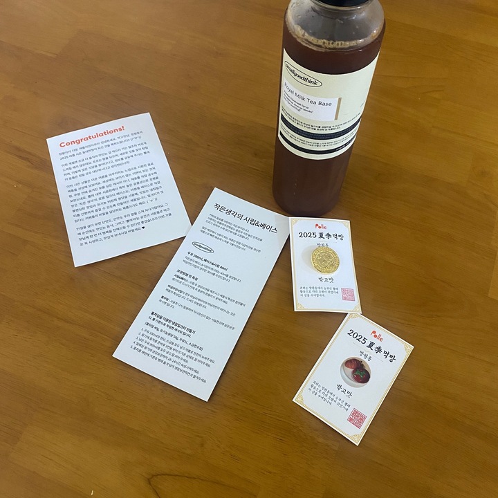 🥳뽈레팀의 선물상자🥳 🎁2025.06 - 2025.08 🔖작은 생각_밀크티 요번엔 너무 바빠서 활동이 많지않았음에도 망원동에서 굳건한 1위를 지켰네요!! 가을엔 좀 더 열심히 해보겠습니다 ㅎㅎㅎ 품질 좋은 밀크티 맛보며 풍요로운 가을 보내고싶네요!🥰🥰