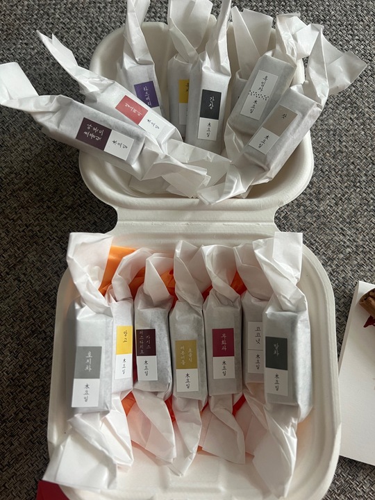 받은 지는 며칠 지났는데, 현생이 바빴어서 이제야 리뷰를 써요! 2025동계먹짱으로 ‘목요일’의 카라멜을 받았어요 수제카라멜이었는데 포장도 귀엽고 맛도 좋아서 너무 만족스러웠어요 맛별로 하나씩 들어있는데 양이 제법 되더라고요🥰 바쁜 날 하나씩 까먹고 있습니다 감사합니다!